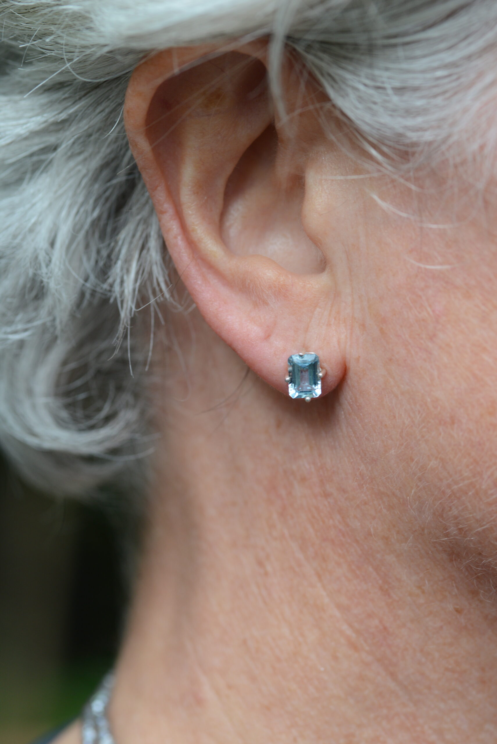 7x5mm Emerald cut sky blue topaz studs set in four delicate claws