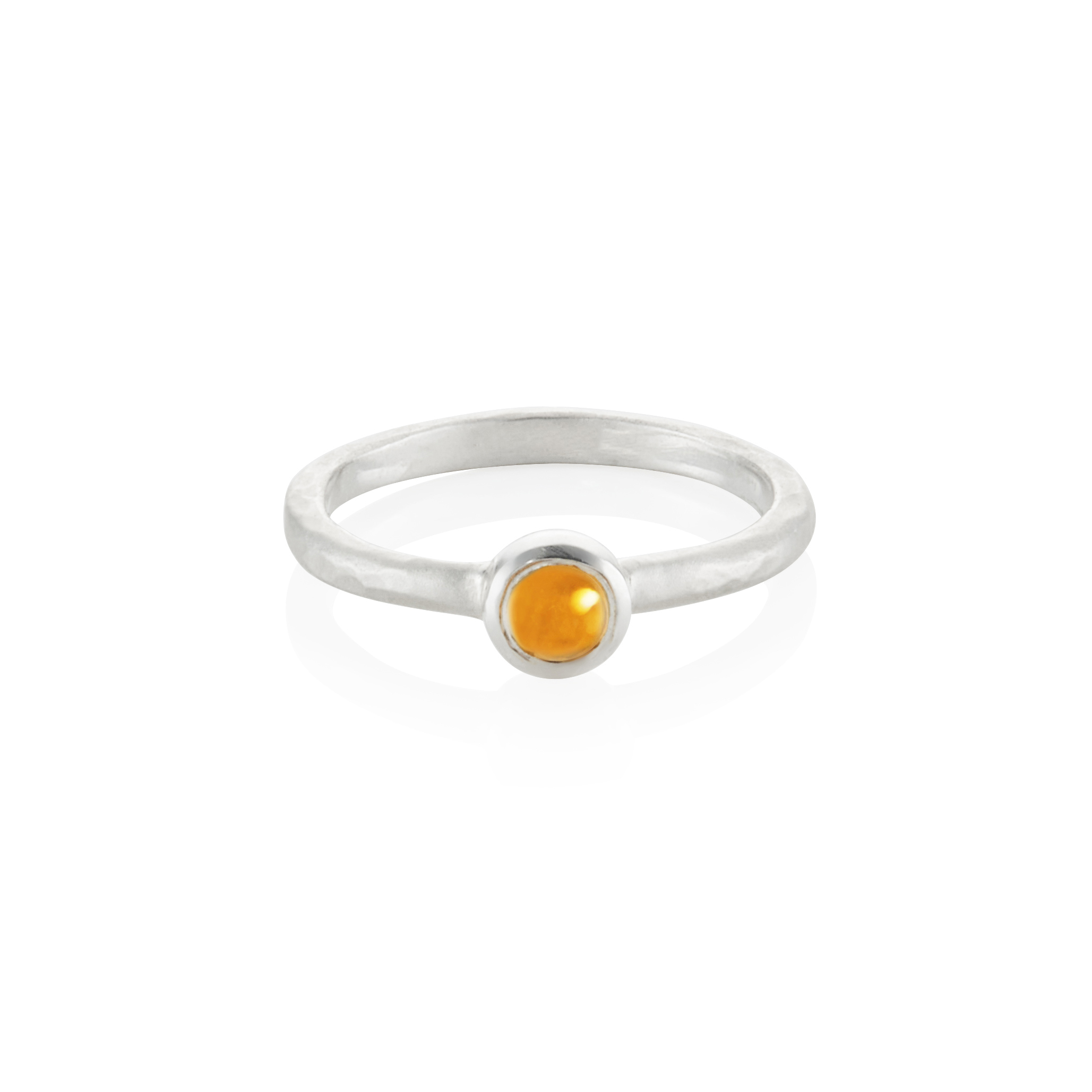 Silver textured cabochon ring - 4mm yellow citrine quantity