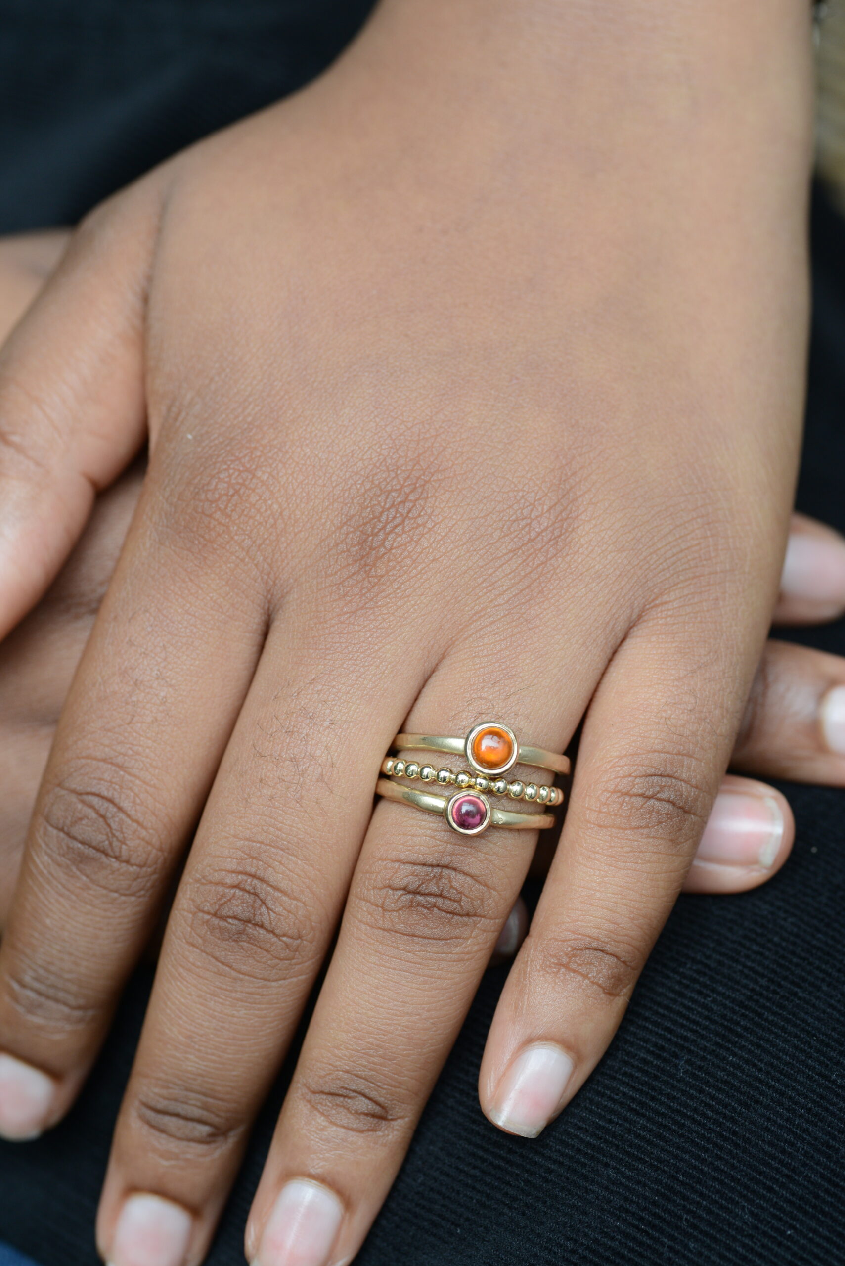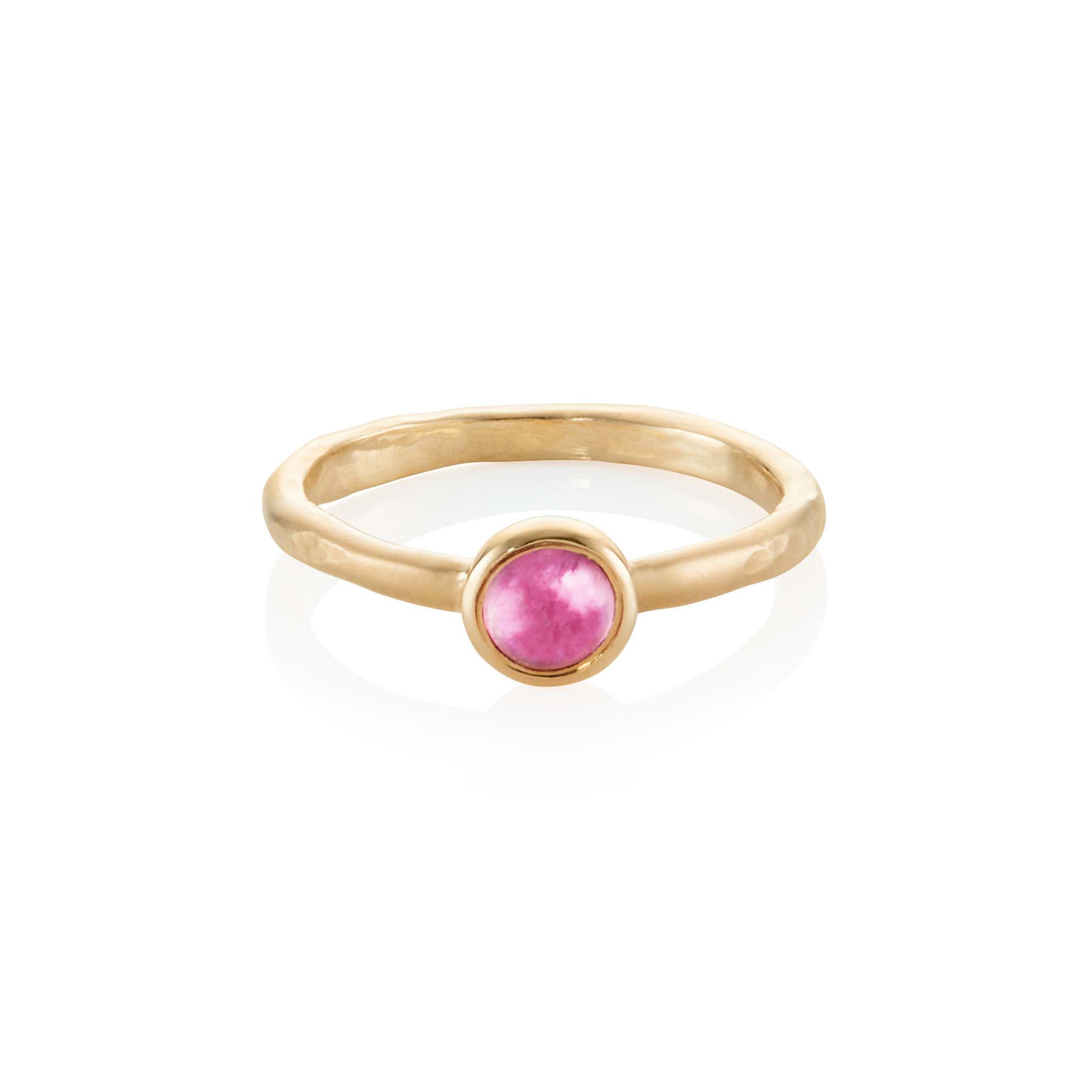 Yellow gold textured cabochon ring - 5mm pink tourmaline quantity